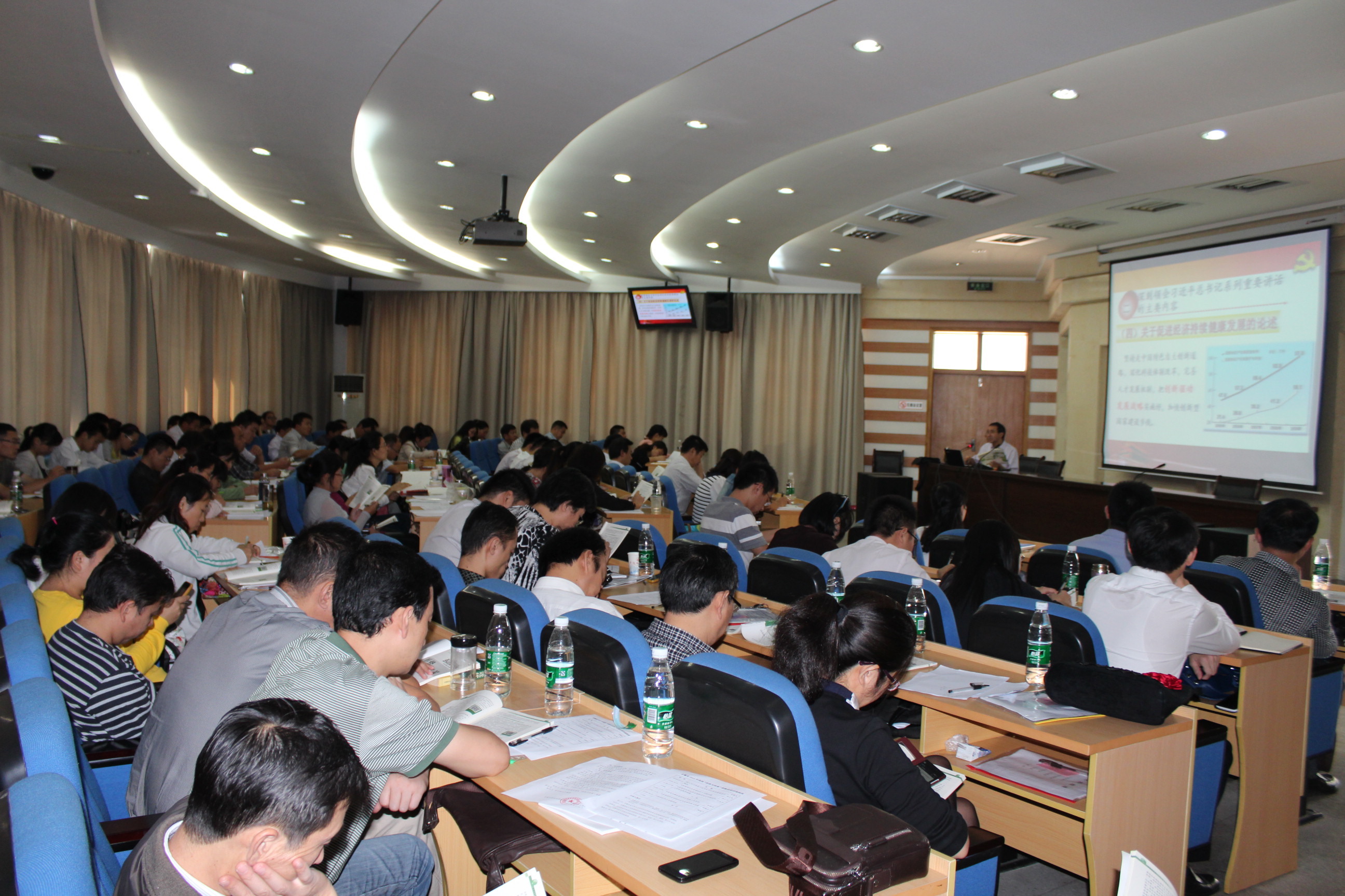 为了更好的掌握课程的要求和教材的内容,出版社和政治学院共同合作,精心安排,对全省高校形势与政策课的老师进行培训,来自全省40多所高校的100多位教师参加了培训交流。高正礼、黄洪雷、汪先平、余精华、龚小平、胡梅叶、陶庭马等专家教授为参训老师做了专题报告。授课专家理论水平高,学术信息量大,确保了本次培训的高质量。