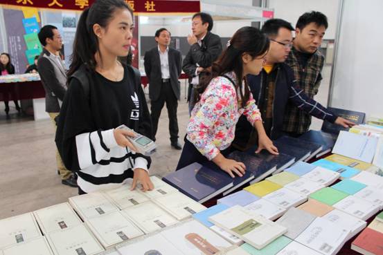 在这次订货会上,我社展出了已出版的一批精品图书,主要有《安徽师范大学馆藏千年徽州契约文书集萃》和“名家选评中国文学经典丛书”“百年国学经典选刊”“安徽师范大学文学院学术文库”丛书等。不少参会人员在展台前驻足浏览,询问相关情况。